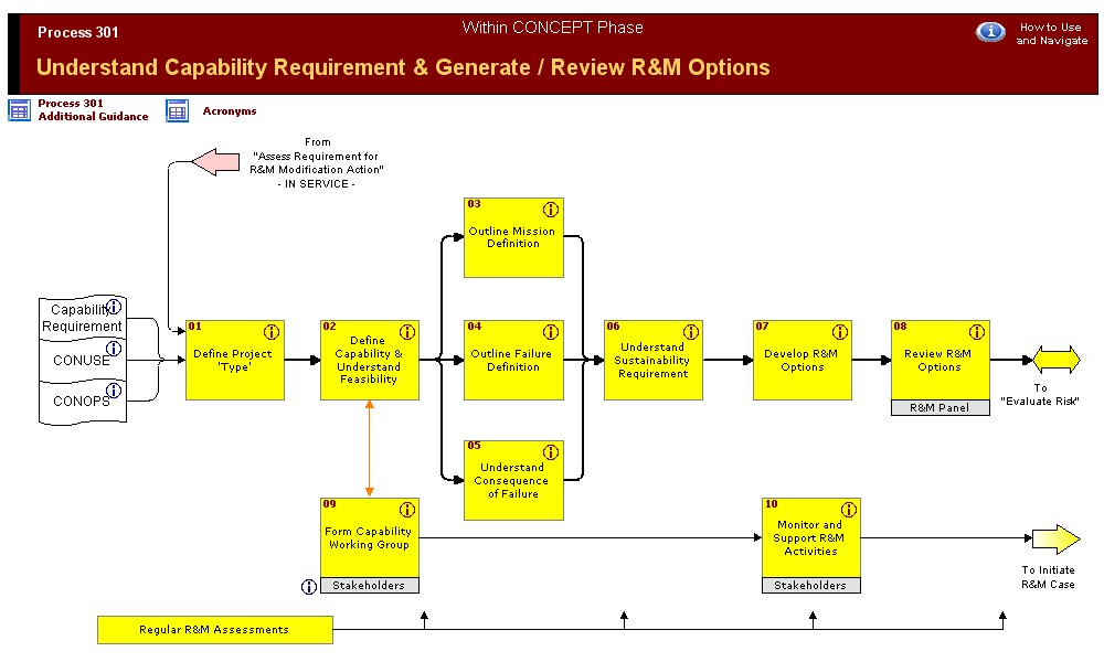 Assess Requirement for R&M Modification Action Evaluate Risk, Initiate R&M Case and Create Evidence Framework Evaluate Risk, Initiate R&M Case and Create Evidence Framework Process 301 Acronym List How to Use and Navigate