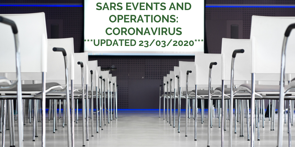 19th March 2020 The current situation with regards to Coronavirus is dynamic, SaRS is monitoring the situation and responding appropriately, taking advice from the appropriate authorities.